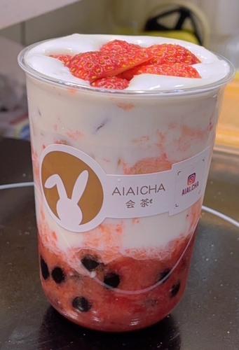 濃厚なイチゴミルクにⅹQQもちもちタピオカ。フレッシュなとちあいかイチゴが最高!